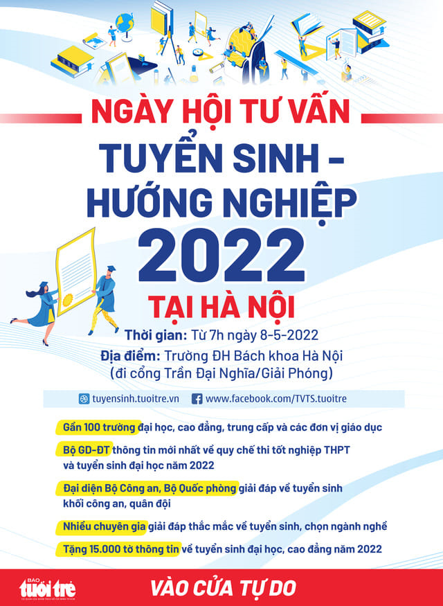 Ngày hội tư vấn tuyển sinh - hướng nghiệp 2022 tại Hà Nội sẽ diễn ra vào ngày chủ nhật 8-5, tại khuôn viên Trường đại học Bách khoa Hà Nội.