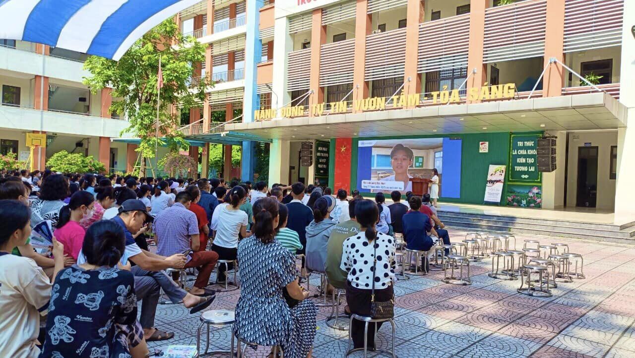 Tại buổi gặp mặt này, thầy giáo Hữu Trung Kiên - Bí thư Chi bộ, Hiệu trưởng nhà trường đã giới thiệu và cung cấp những thông tin quan trọng về nhà trường với các hoạt động giáo dục cụ thể. Đặc biệt, thầy đã tập trung giới thiệu về chương trình giáo dục phổ thông 2018 và tư vấn các tổ hợp lựa chọn nhóm lớp, nguyên tắc xếp lớp, giới thiệu về các hoạt động trọng tâm mà các em học sinh K26 sẽ được trải nghiệm trong 3 năm học tại trường…
